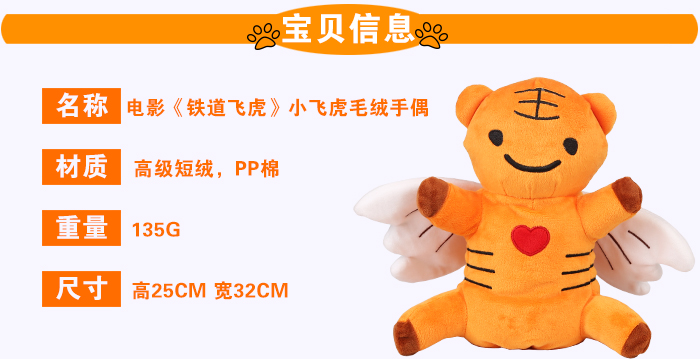 铁道飞虎手偶小号毛绒玩具公仔高22CM(提前一周预定)