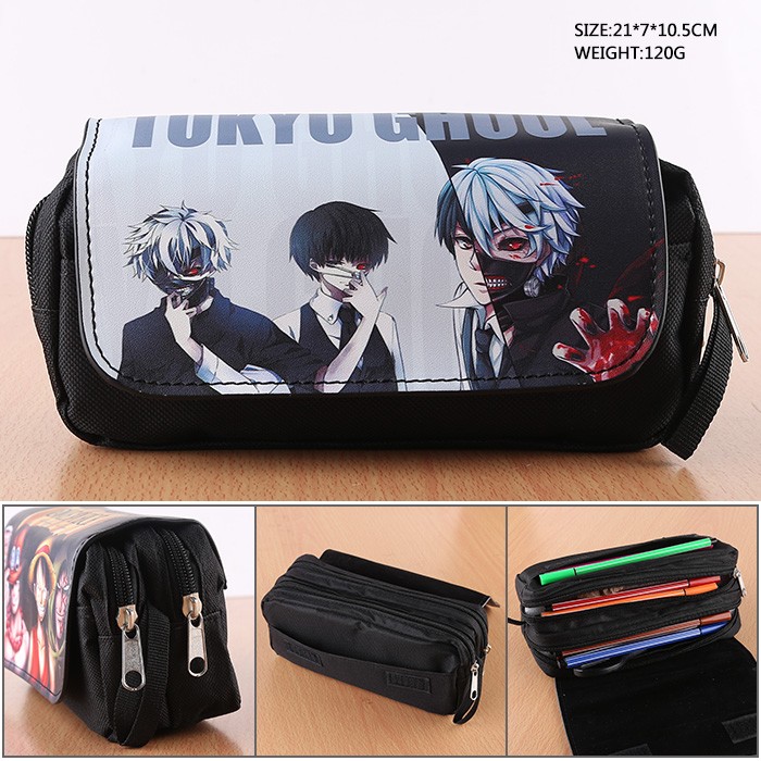 东京食尸鬼PU尼龙多功能双层拉链翻盖钱包笔袋