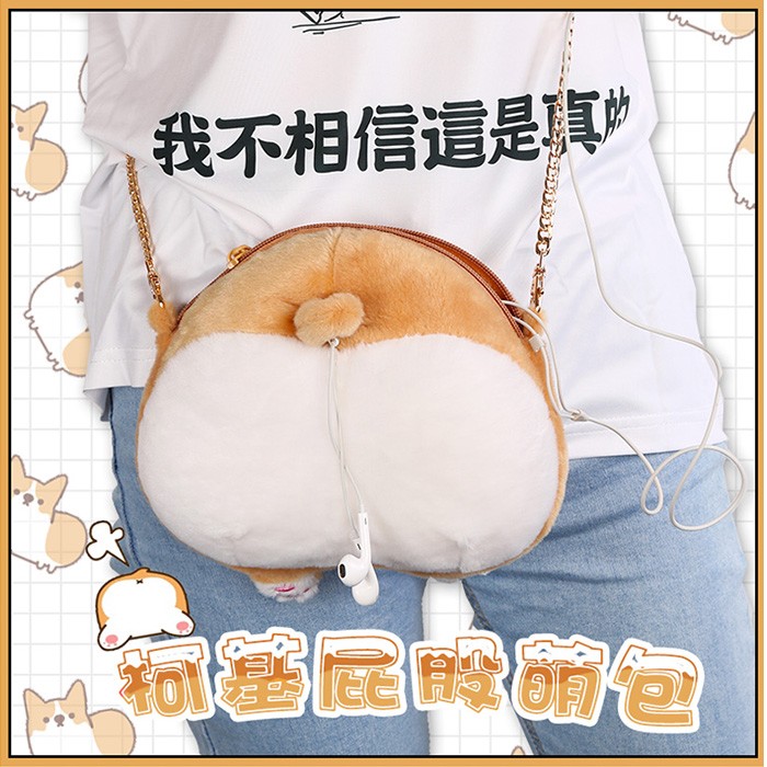 激萌柴犬狗柯基屁股包毛绒斜挎包22X20CM
