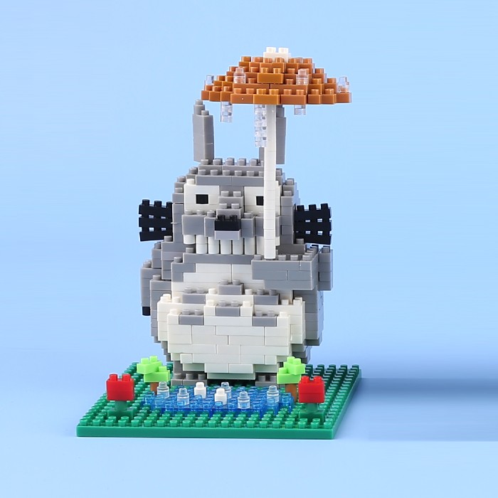 TOTORO宫崎骏NO:9934龙猫雨伞420颗粒积木拼装盒装公仔高约10CM