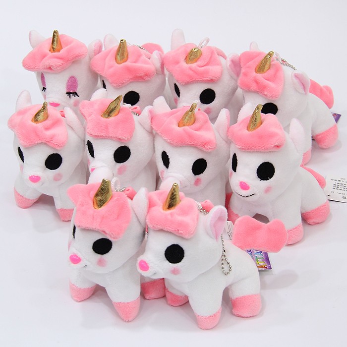 独角兽睁眼Q版粉色毛绒公仔挂件一包10个起批12CM