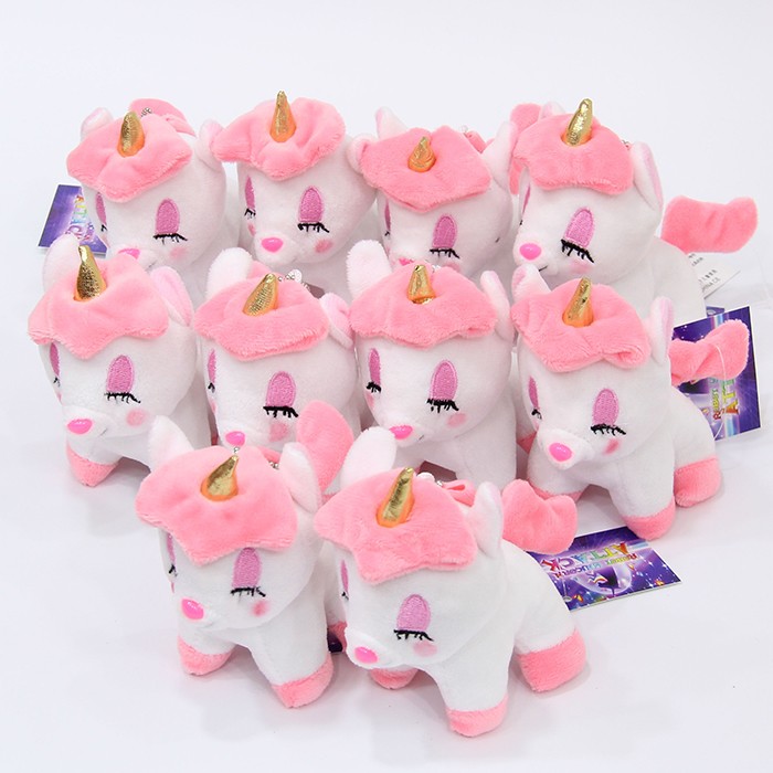 独角兽闭眼Q版粉色毛绒公仔挂件一包10个起批12CM