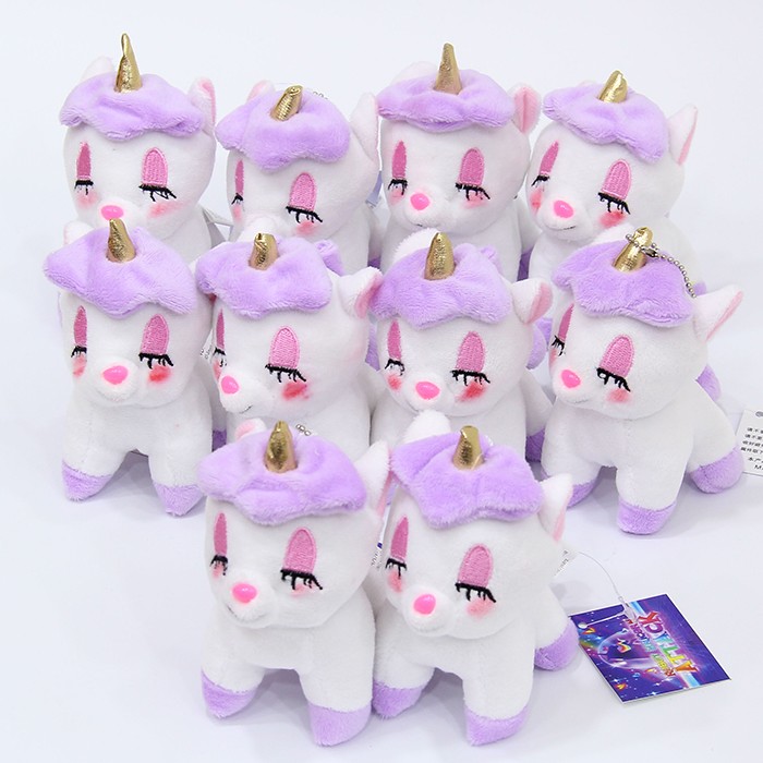 独角兽闭眼Q版紫色毛绒公仔挂件一包10个起批12CM