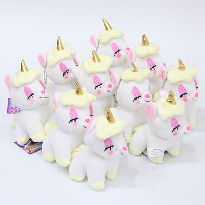 独角兽闭眼Q版黄色毛绒公仔挂件一包10个起批12CM