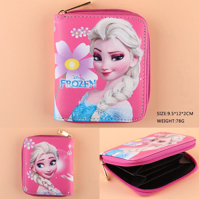 冰雪奇缘PU皮革彩色拉链短钱包A款