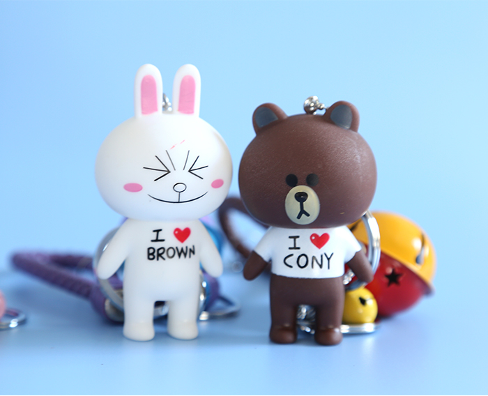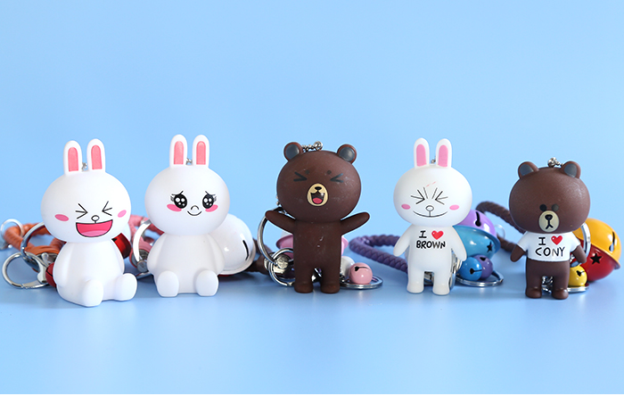 LINE TOWN 布朗熊和可妮兔带铃当6款一套钥匙扣挂件5套起批