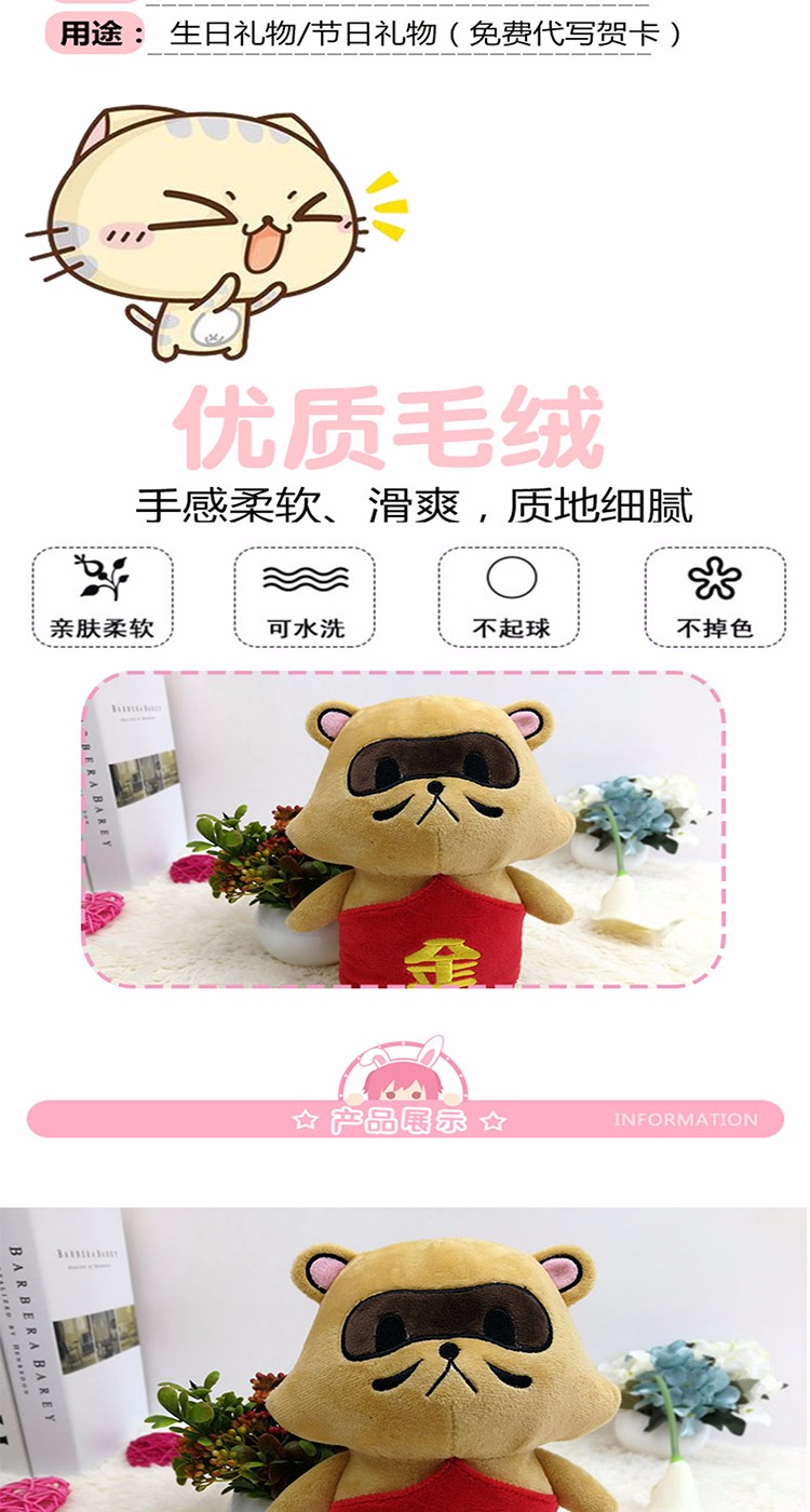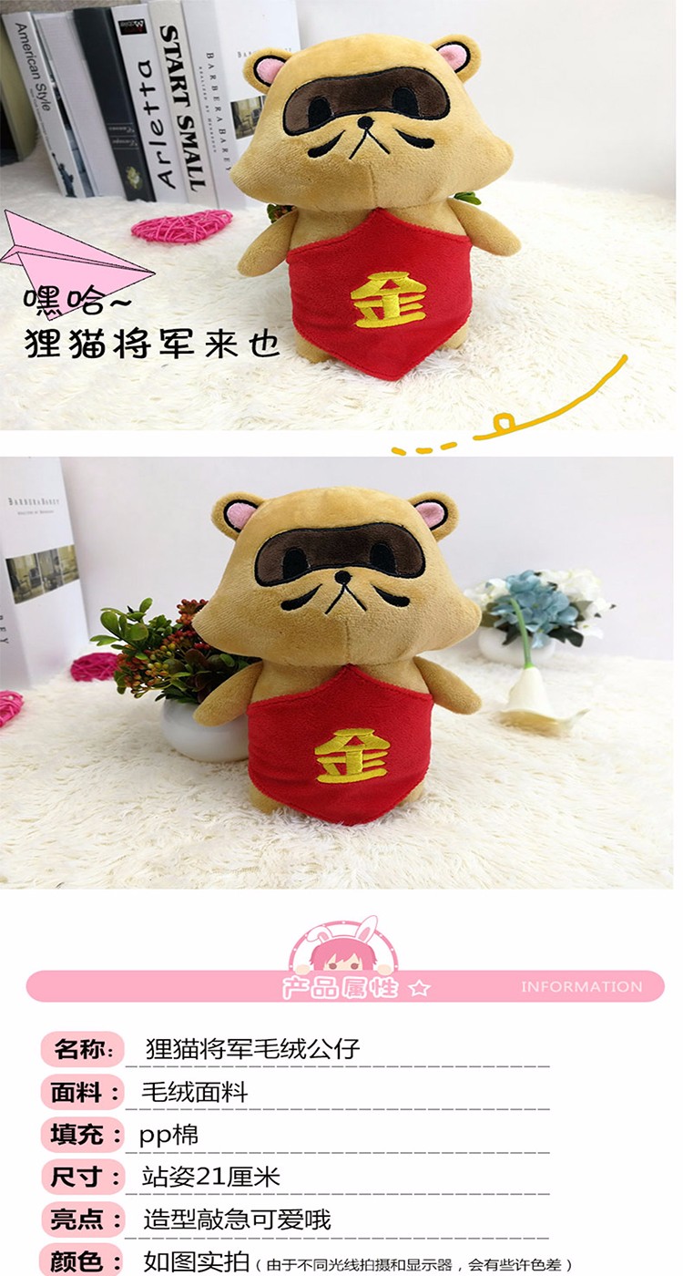 次元宠物狸猫将军抓抓机萌系毛绒公仔5个起批22.5X15.5CM