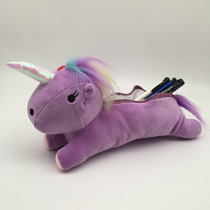 独角兽彩色小马毛绒拉链笔袋紫色30CM80克