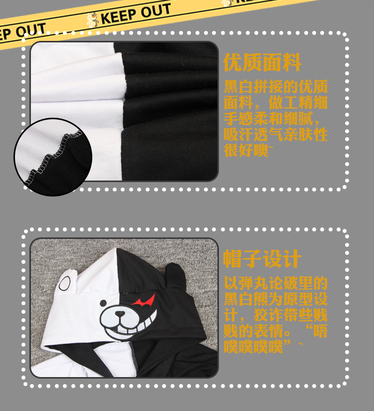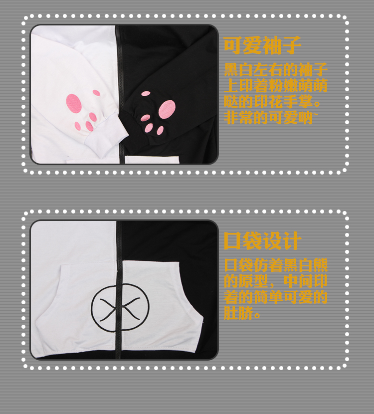 弹丸轮破黑白熊薄款戴帽拉链COS卫衣外套S M L XL XXL XXXL