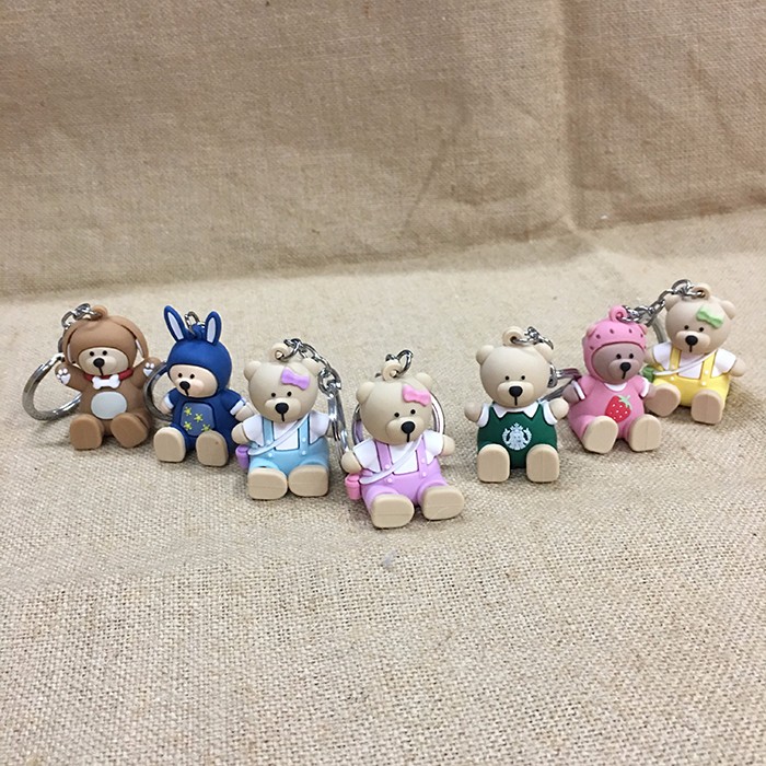 泰迪熊蓝色衣服手机支架钥匙扣5个起批