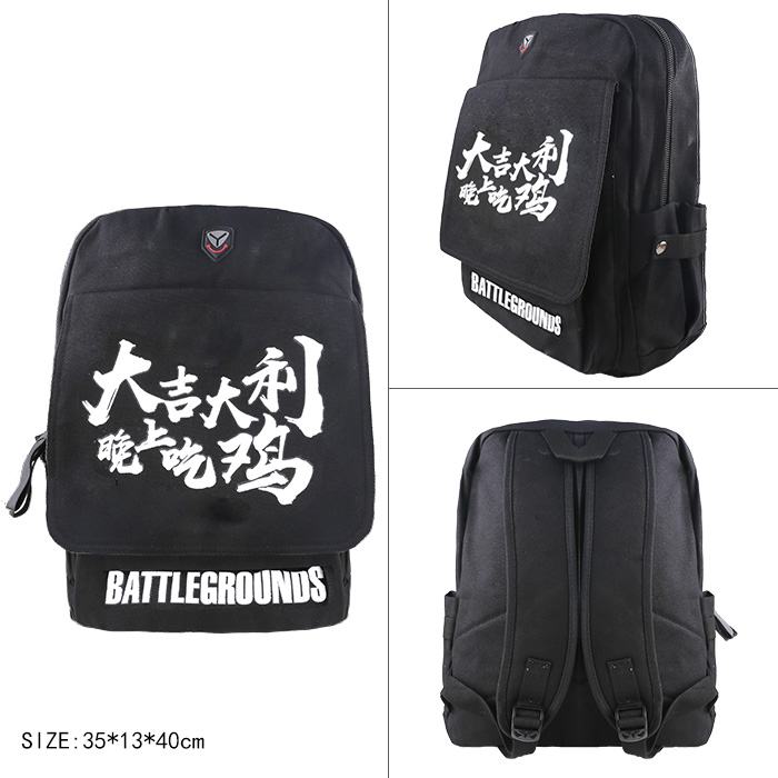 绝地求生 大吉大利晚上吃鸡 吃鸡标志 帆布黑色拉链背包双肩包 35X13X40