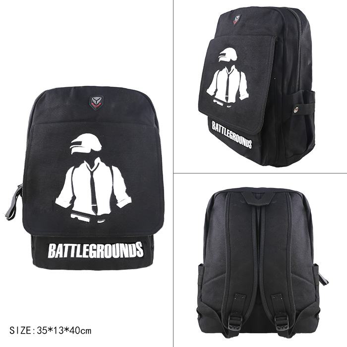 绝地求生 大吉大利晚上吃鸡 人物标志 帆布黑色拉链背包双肩包 35X13X40