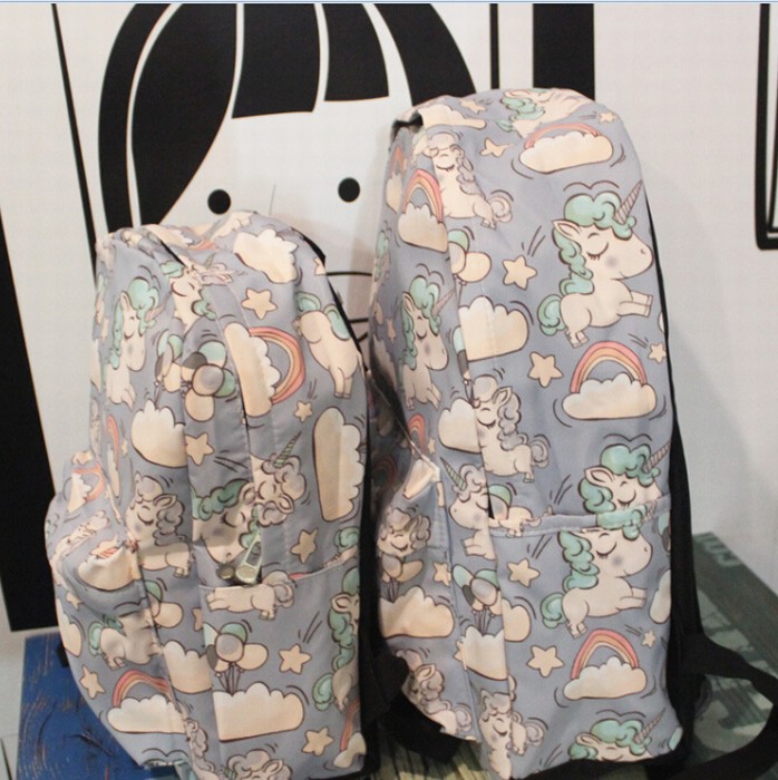 独角兽-卡通动漫-帆布单层双向拉链双肩包背包-39X30X12CM 3个起批