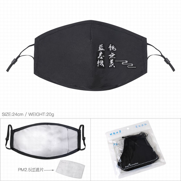 魔道祖师 蓝忘机魏无羡文字款 黑色彩印纯棉口罩 PM2.5过滤片