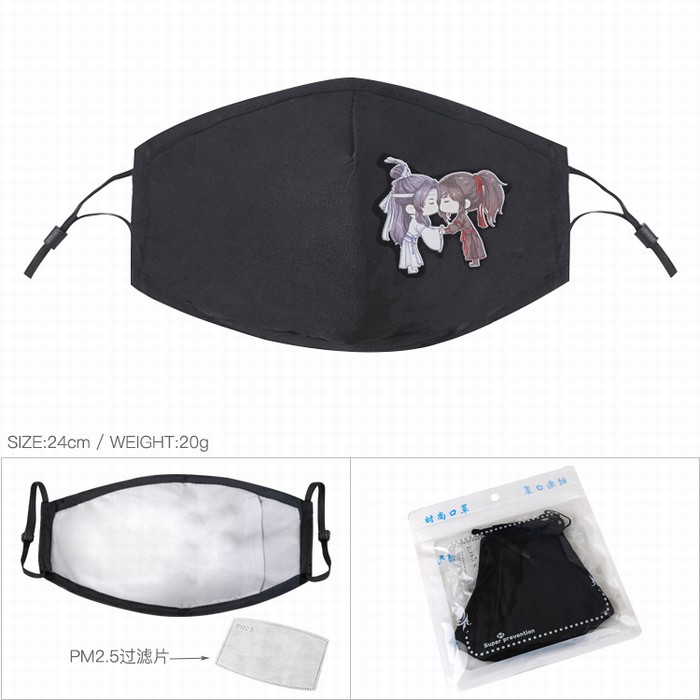 魔道祖师 握手款 黑色彩印纯棉口罩 PM2.5过滤片