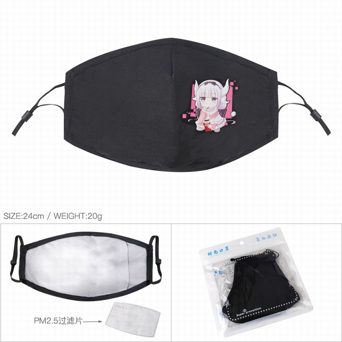 小林家的龙女仆 康娜 黑色彩印纯棉口罩 PM2.5过滤片