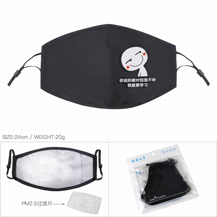 颜文字颜表情 你说的都对 黑色彩印纯棉口罩 PM2.5过滤片