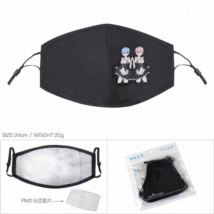 从零开始的异世界生活 雷姆拉姆 黑色彩印纯棉口罩 PM2.5过滤片
