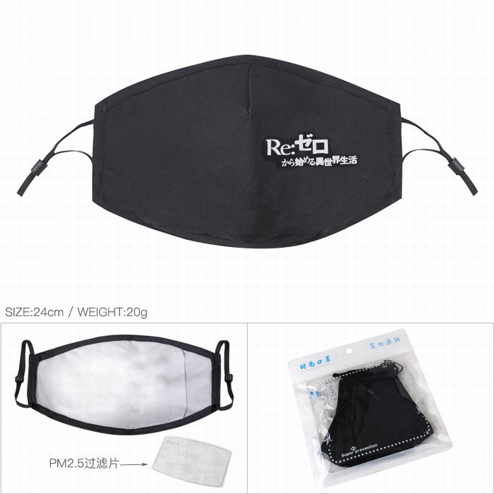 从零开始的异世界生活 文字款 黑色彩印纯棉口罩 PM2.5过滤片