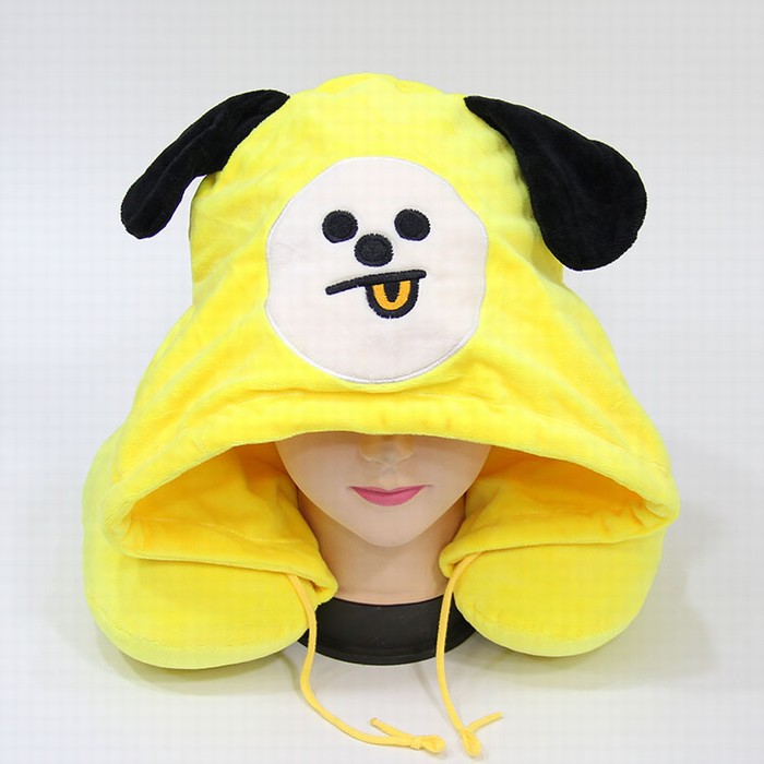 BTS 防弹少年团 BT21 黄色 毛绒连帽颈枕帽子 30CM 0.28KG