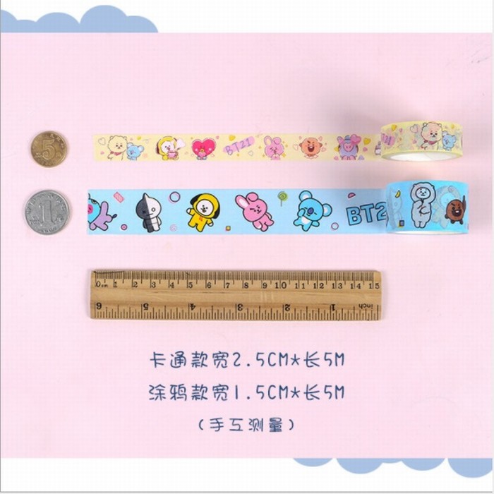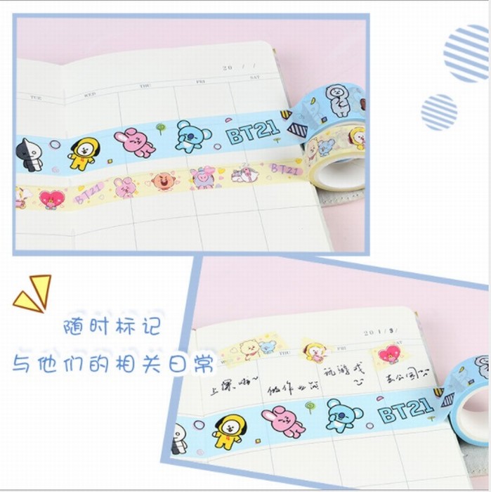 BTS 防弹少年团 BT21卡通款 纸胶带DIY手账贴纸 5卷起批 提前三天预订