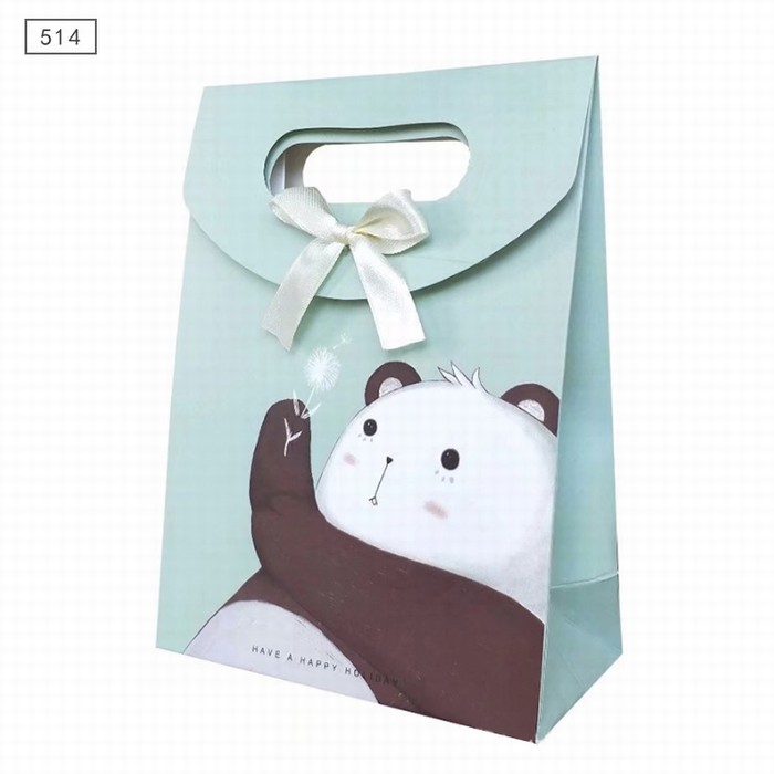 可爱熊猫-小号514-翻盖粘扣袋纸袋礼品袋-12个起批-12.5X16.5X6CM
