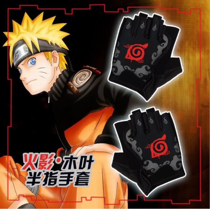 火影忍者 木叶 印花黑色半指手套 14X16CM 2双起批