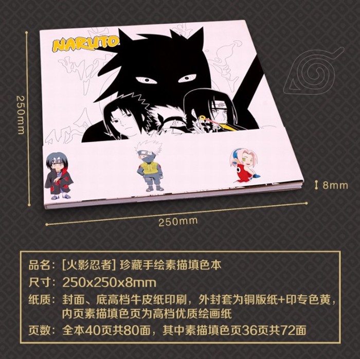 火影忍者 珍藏手绘素描填色本 250X250X8CM