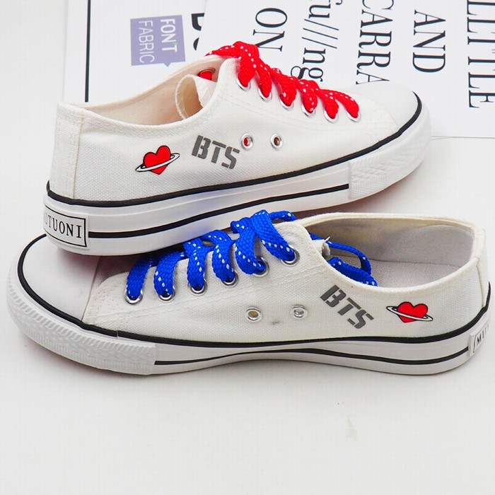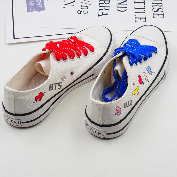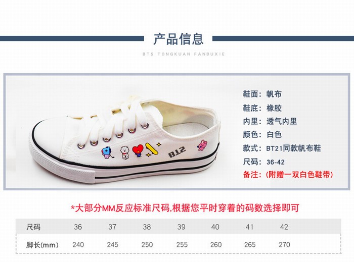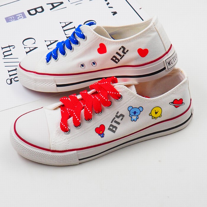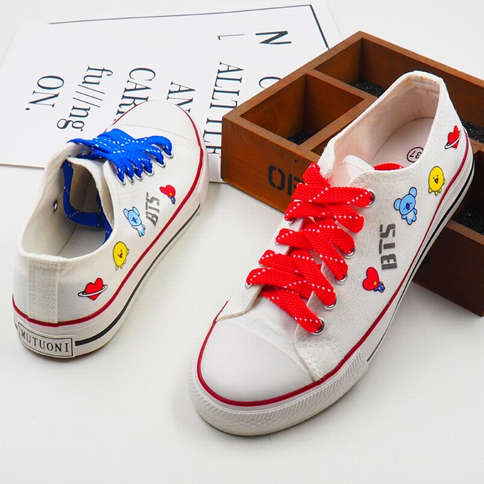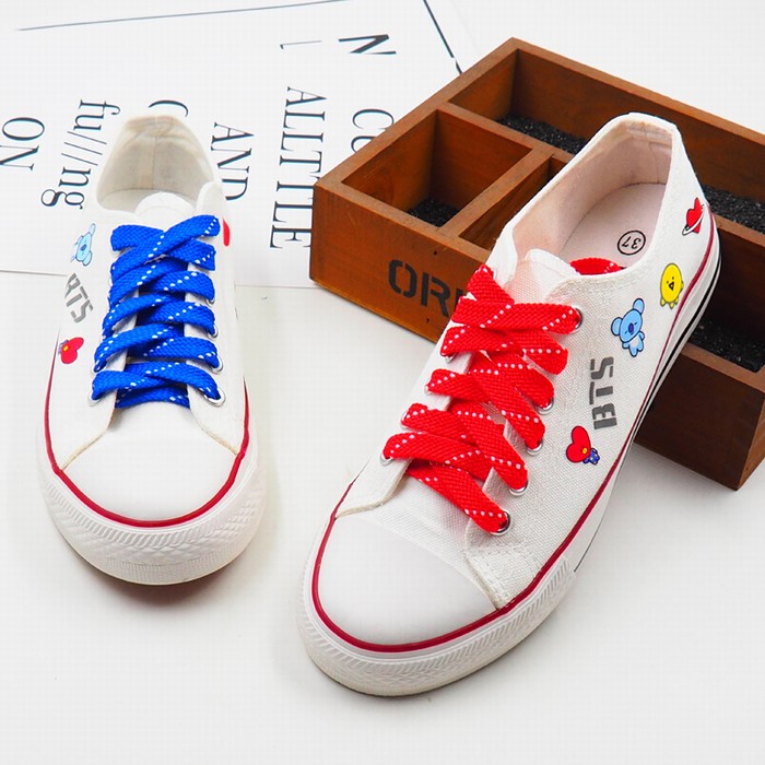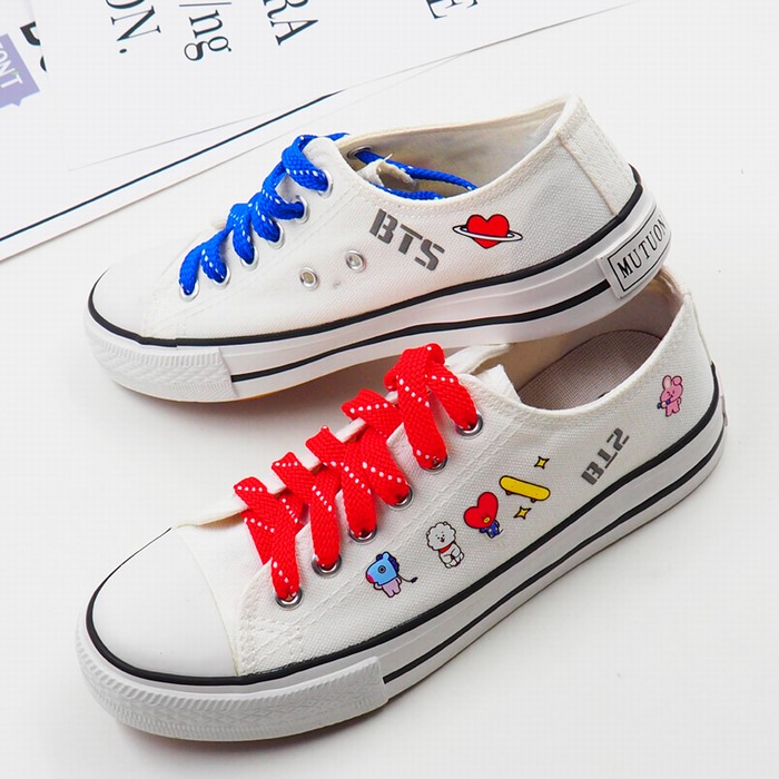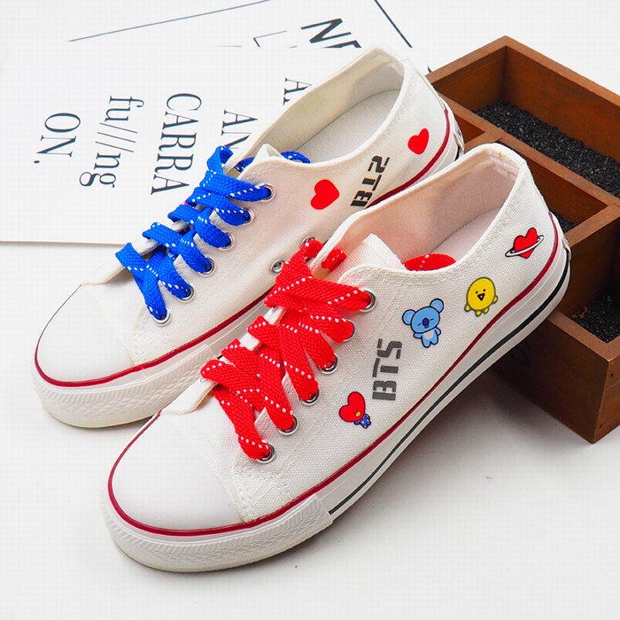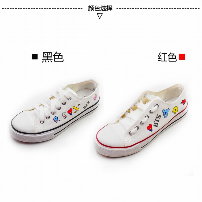 BTS防弹少年团BT21红色印花帆布鞋学生鞋 36-42共7个码