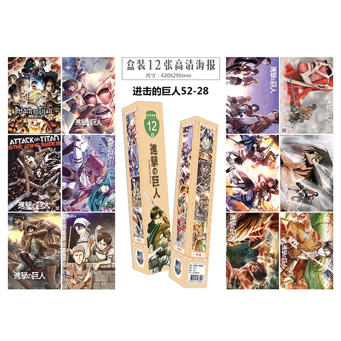 进击的巨人-12张一盒-盒装防水高清压纹海报-5盒起批-封面随机-42X29CM