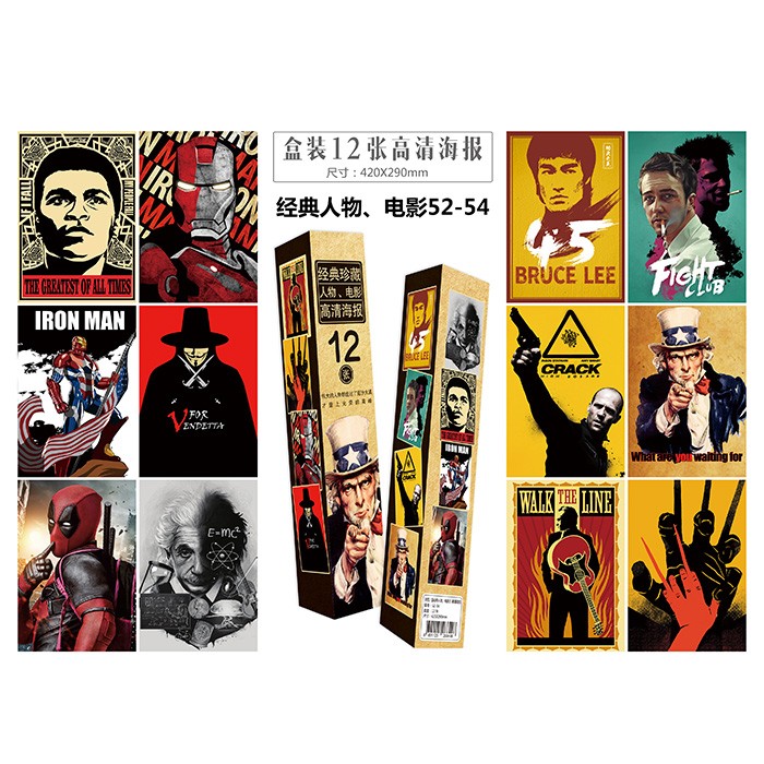 经典人物、电影海报-12张一盒52-54盒装防水高清压纹海报-5盒起批-封面随机-42X29CM