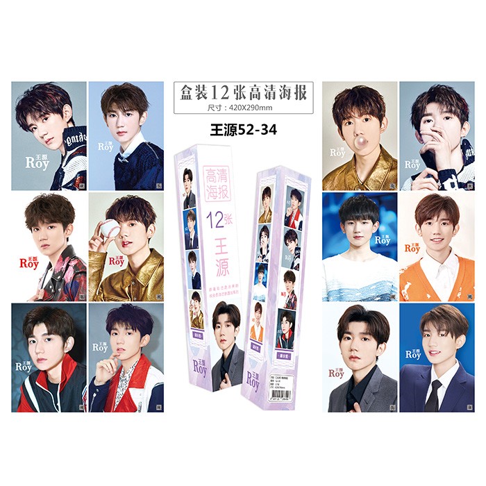 王源明星周边-12张一盒-盒装防水高清压纹海报-5盒起批-封面随机-42X29CM