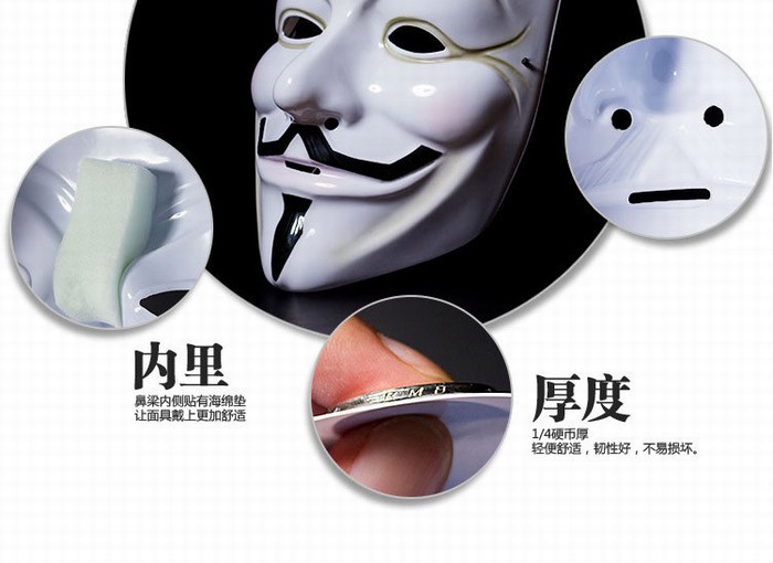 V字仇杀队 面具 电影同款 V脸怪客 面具 环保PVC 单个OPP袋装 5个起批