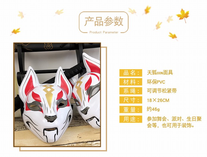 堡垒之夜 FORTNITE 天狐新款 PVC 面具 33.5X23CM 90G单独OPP袋装COSPLAY道具 5个起批