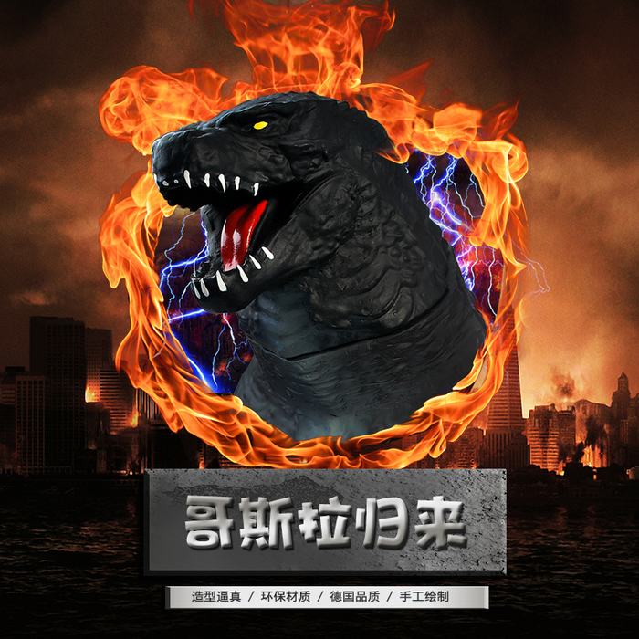 超大号哥斯拉怪兽黑色关节可动袋装手办摆件模型 53CM