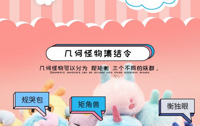 正版授权 几何怪物衡粉团 赛乐绒毛绒小挂饰 7.5CM