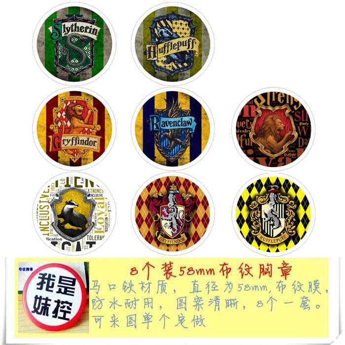 哈利波特 动漫马口铁徽章胸章圆形布纹胸针 8款一套 58MM