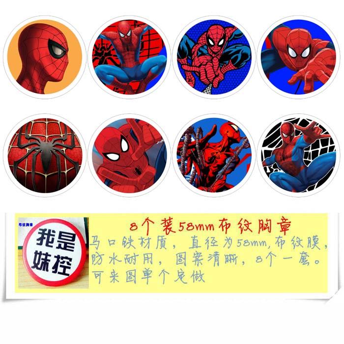 蜘蛛侠 动漫马口铁徽章胸章圆形布纹胸针 8款一套 58MM