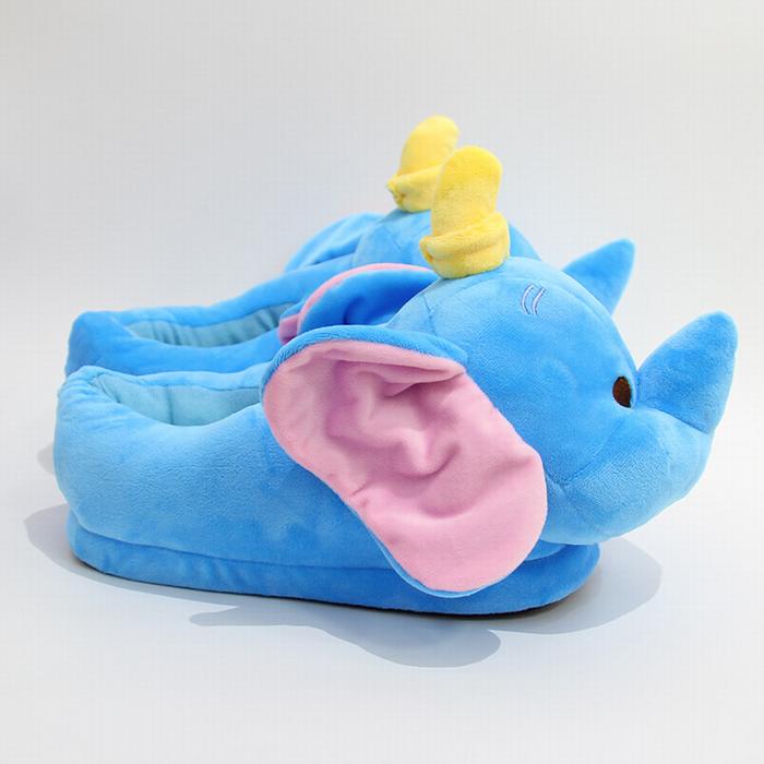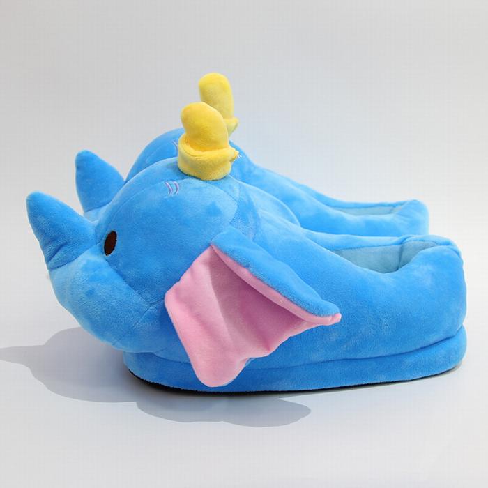 卡通小飞象 蓝色 全包毛绒公仔拖鞋 28CM 0.38KG