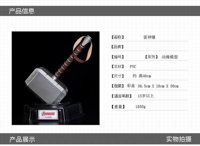 复仇者联盟 1:1雷神锤 盒装手办摆件模型 高约40CM 1850G 36.5X18X50CM