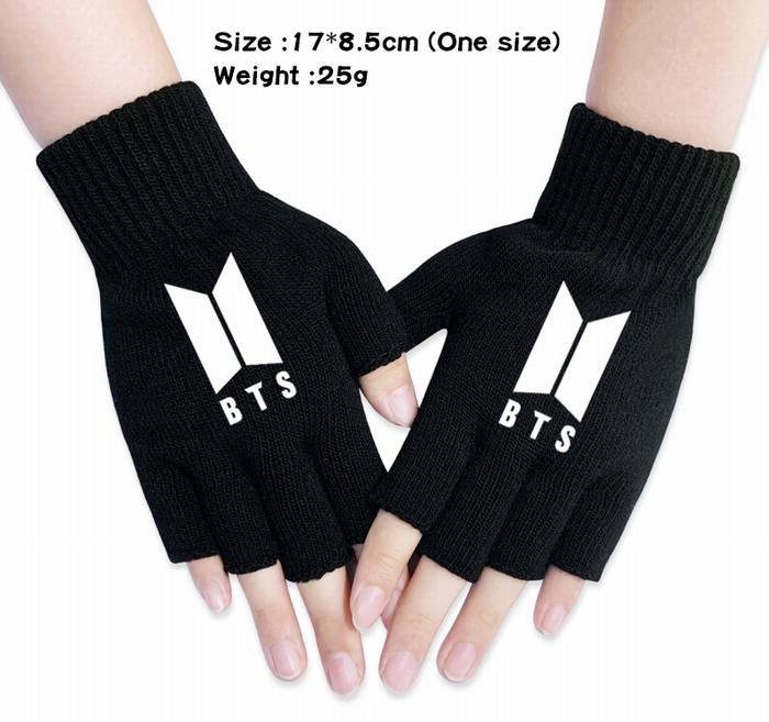 防弹少年团 BTS-10A 黑色 动漫针织半指手套