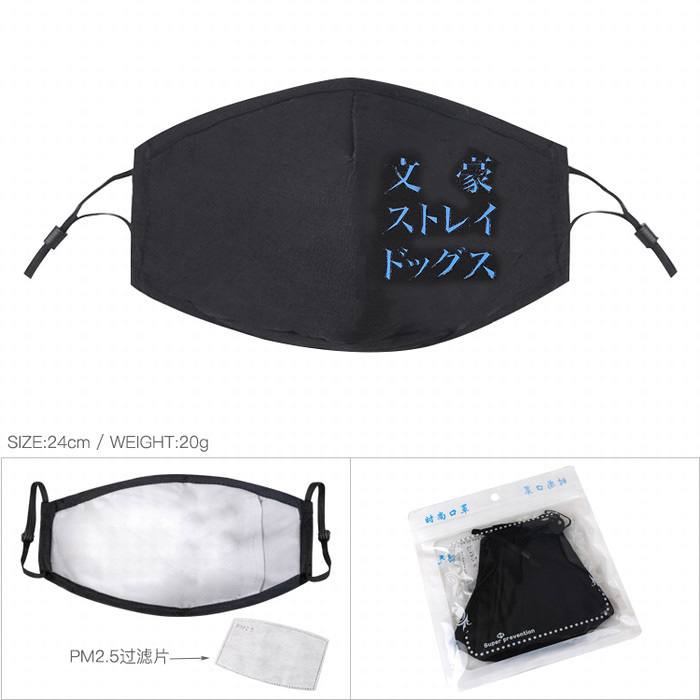 文豪野犬 黑色彩印纯棉口罩 PM2.5过滤片