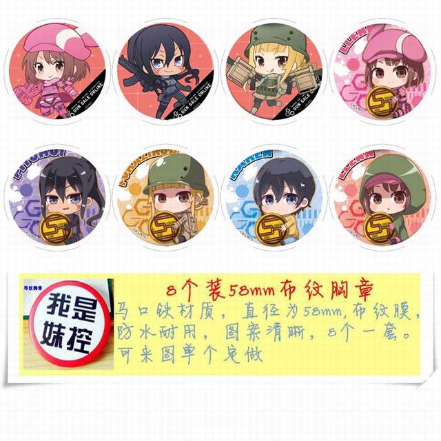 刀剑神域外传 动漫马口铁徽章胸章圆形布纹胸针 8款一套 58MM