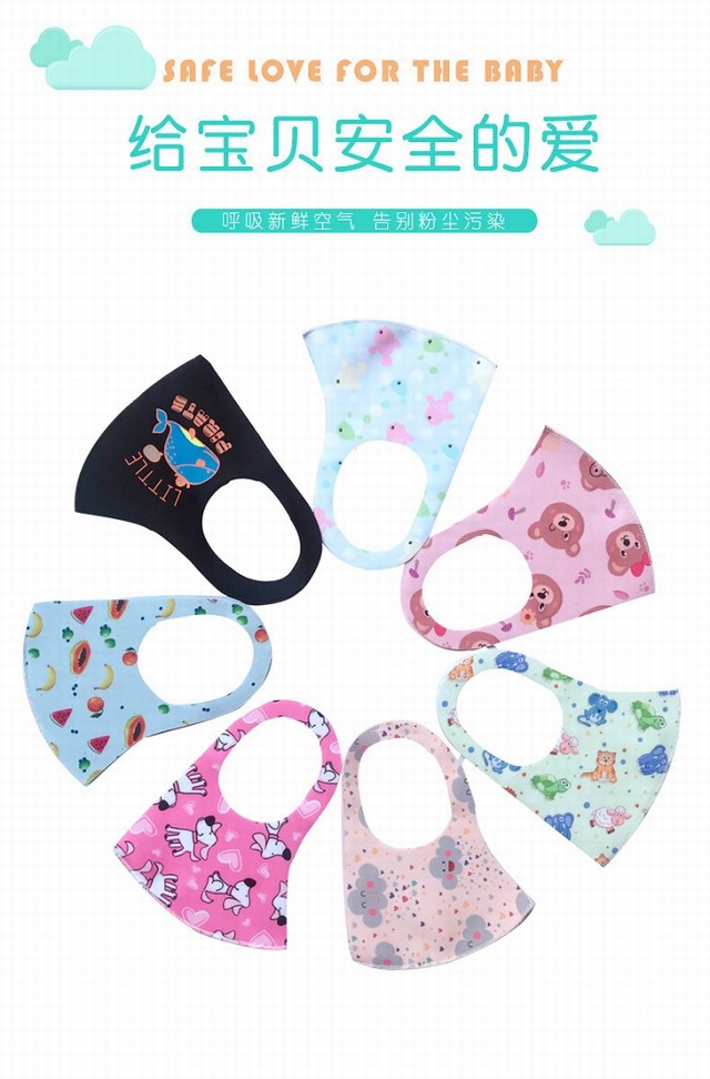 卡通儿童印花立体防尘透气冰丝棉可水洗口罩 颜色款式随机 10个起批