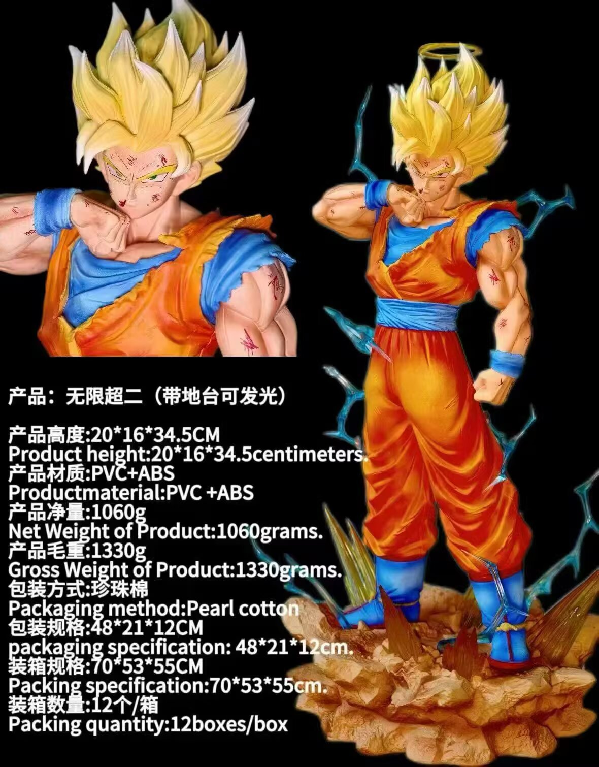 七龙珠 GK 超级赛亚人2代 超赛2 光环 孙悟空 盒装手办 高约33cm