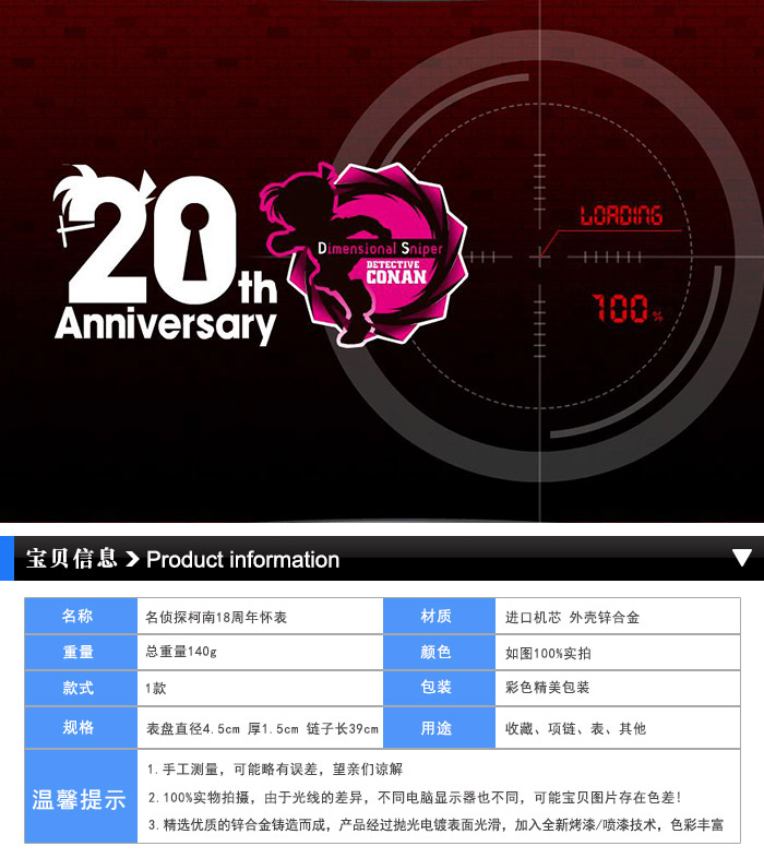 特价名侦探柯南18周年银色盒装怀表