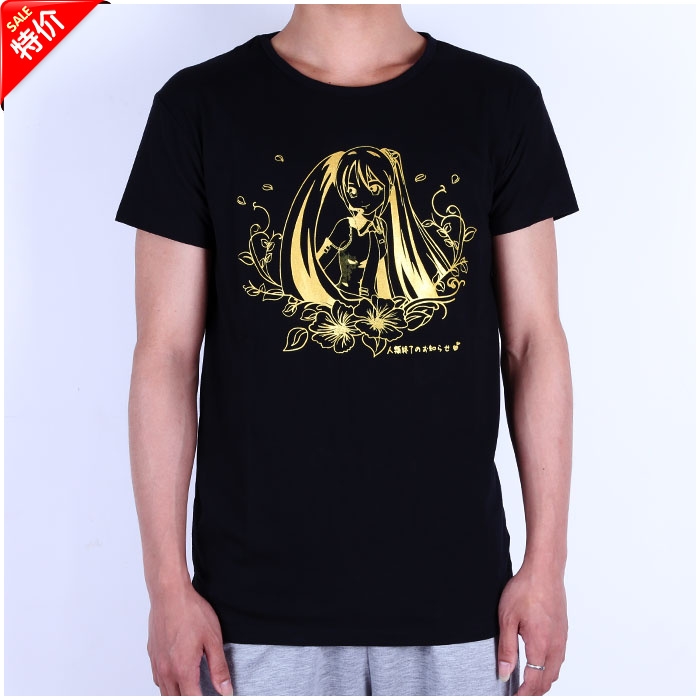 初音未来人物烫金纯棉短袖T恤男女通用款 M L XL