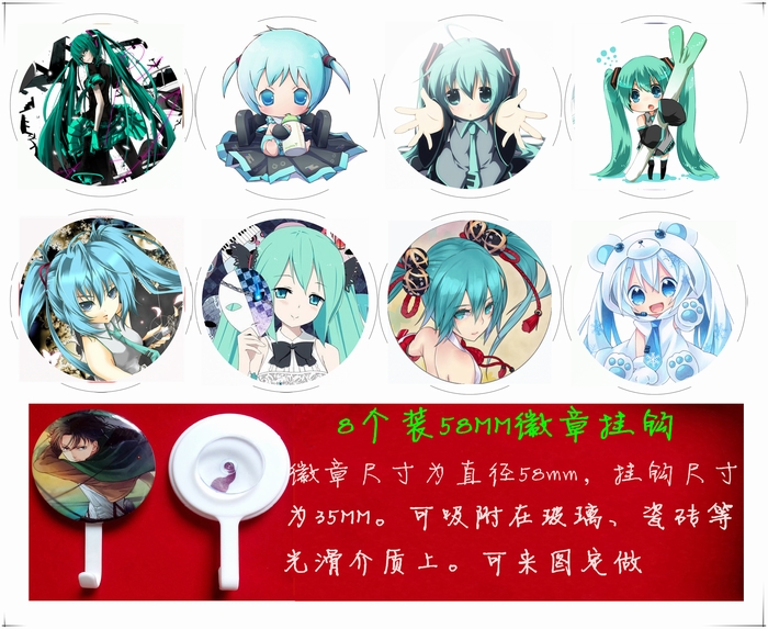 初音未来8只装一套58MM吸盘挂钩