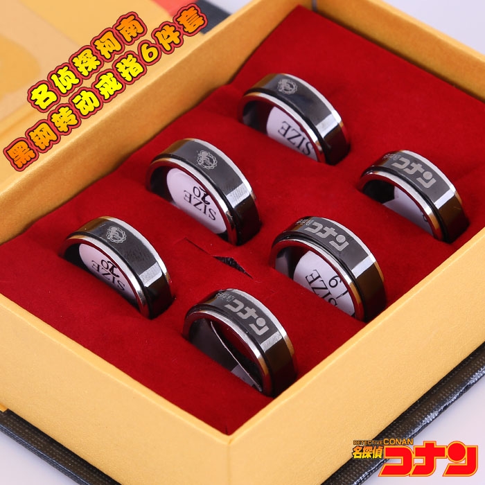名侦探柯南18周年标志黑钢转动戒指6个一套装