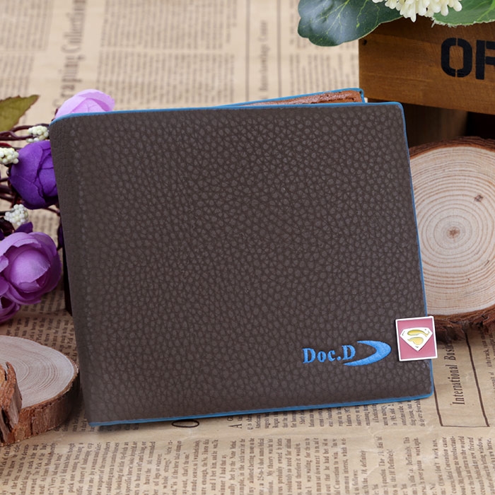 超人金色小号标志进口PU皮短款棕色底蓝色油边钱包